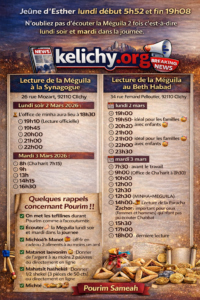 Chaque semaine retrouvez les horaires de chabbat à Clichy avec le programme…